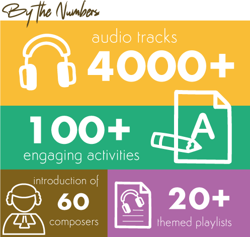 Our rich content – encompassing music from classical, film and TV, opera and world genres – has proved to be valuable to classroom and private teachers around the world. Not only is the Naxos MusicBox capable of supporting and complementing different styles, modes and paces of teaching, it is also versatile enough to be used in a school setting with its additional teacher support materials, or at home for those who love to explore independently.